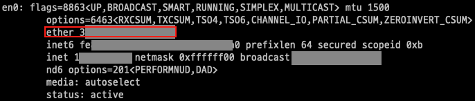 - ifconfig 로도 확인 가능 (en0: ether 부분)